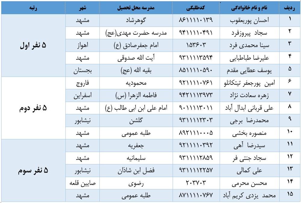 بر اساس این گزارش، اين مسابقه به همت اداره سیاسی معاونت فرهنگی اجتماعی حوزه علمیه خراسان و مدرسه علمیه سیادت مشهد برگزار شد و از بین این 170 نفر قرعه کشی و اسامی برند گان اعلام گردید.